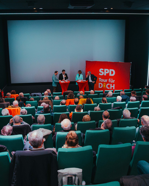 Diese Themen bewegen die Menschen in unserem Land. Genau darüber haben wir bei der „Tour für Dich“ gemeinsam mit unserem Spitzenkandidaten Andreas Stoch in Walldürn gesprochen. In einem voll besetzten Kinosaal kamen Bürgerinnen und Bürger miteinander ins Gespräch – offen, ehrlich und auf Augenhöhe. Es ging um konkrete Sorgen, klare Erwartungen und um die Frage, wie wir Baden-Württemberg gemeinsam gut in die Zukunft führen können.